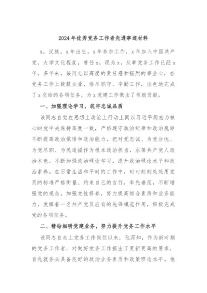 / 【七哥公文】2024年:2024年优秀党务工作者先进事迹材料+更多免费公文+VX:QiGeGongWen2024