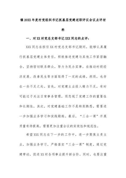【七哥公文】2024年:镇20XX年度村党组织书记抓基层党建述职评议会议点评材料+更多免费公文+VX:QiGeGongWen2024