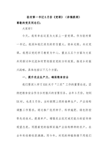 / 【七哥公文】2024年:驻村第一书记上《党课》(讲稿提纲)+更多免费公文+VX:QiGeGongWen2024