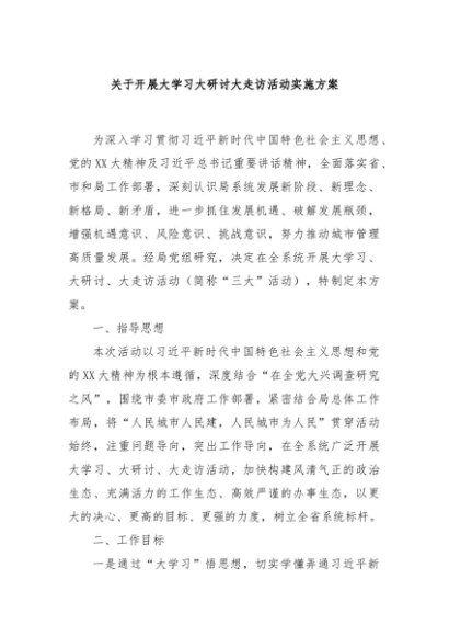 / 【七哥公文】2024年:关于开展大学习大研讨大走访活动实施方案+更多免费公文+VX:QiGeGongWen2024