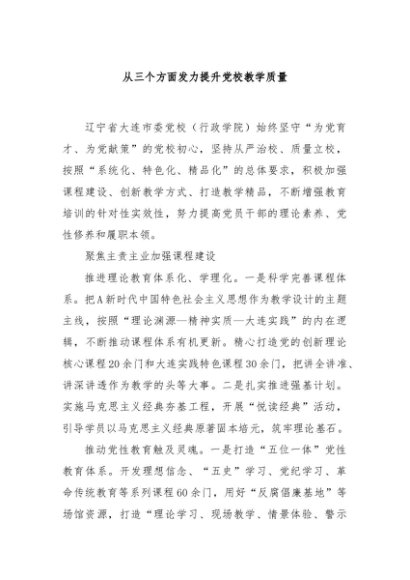 【七哥公文】2024年:从三个方面发力提升党校教学质量+更多免费公文+VX:QiGeGongWen2024
