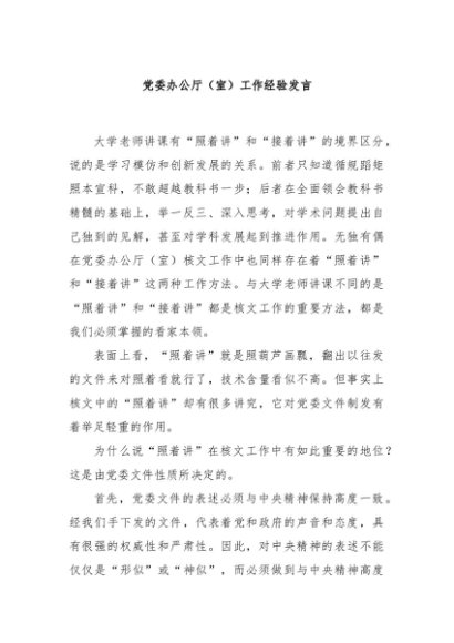 / 【七哥公文】2024年:党委办公厅(室)工作经验发言+更多免费公文+VX:QiGeGongWen2024