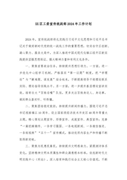 / 【七哥公文】2024年:XX区工委宣传统战部2024年工作计划+更多免费公文+VX:QiGeGongWen2024