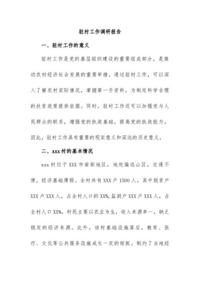 / 【七哥公文】2024年:驻村工作调研报告+更多免费公文+VX:QiGeGongWen2024