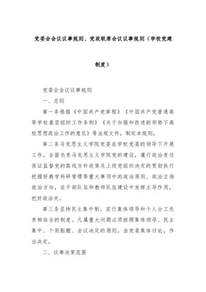 【七哥公文】2024年:党委会会议议事规则、党政联席会议议事规则(学校党建制度)+更多免费公文+VX:QiGeGongWen2024
