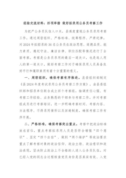 / 【七哥公文】2024年:经验交流材料:四项举措 做好拟录用公务员考察工作+更多免费公文+VX:QiGeGongWen2024