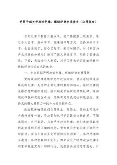 【七哥公文】2024年:党员干部关于政治纪律、组织纪律交流发言(心得体会)+更多免费公文+VX:QiGeGongWen2024