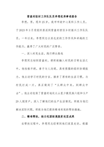 / 【七哥公文】2024年:驻村工作队员优秀事迹和年度优秀总结+更多免费公文+VX:QiGeGongWen2024