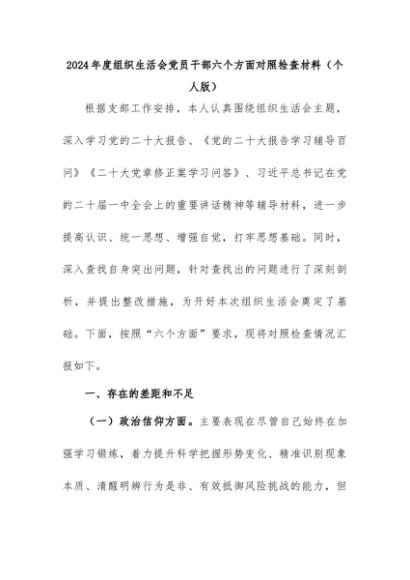 【七哥公文】2024年:2024年度组织生活会党员干部六个方面对照检查材料+更多免费公文+VX:QiGeGongWen2024