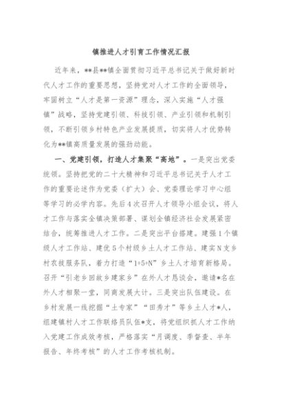 / 【七哥公文】2024年:镇推进人才引育工作情况汇报+更多免费公文+VX:QiGeGongWen2024