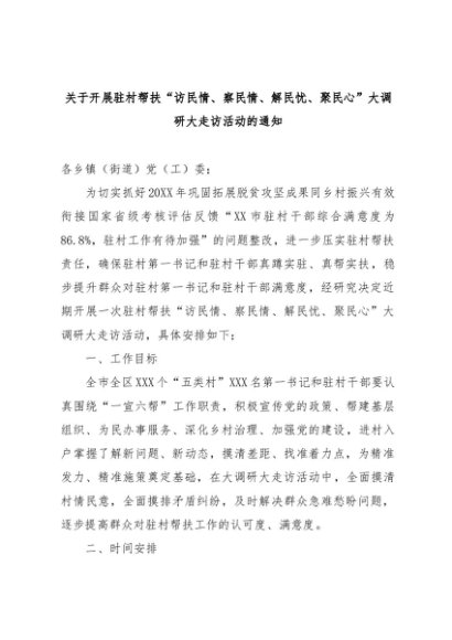 【七哥公文】2024年:关于开展驻村帮扶“访民情、察民情、解民忧、聚民心”大调研大走访活动的通知+更多免费公文+VX:QiGeGongWen2024