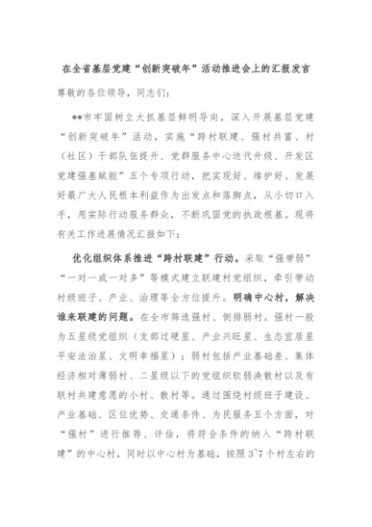 【七哥公文】2024年:在全省基层党建“创新突破年”活动推进会上的汇报发言+更多免费公文+VX:QiGeGongWen2024