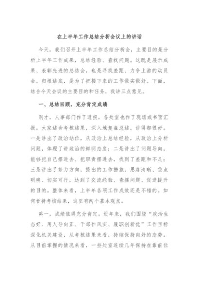 / 【七哥公文】2024年:在上半年工作总结分析会议上的讲话+更多免费公文+VX:QiGeGongWen2024
