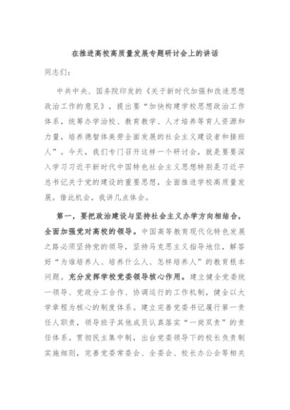 / 【七哥公文】2024年:在推进高校高质量发展专题研讨会上的讲话+更多免费公文+VX:QiGeGongWen2024
