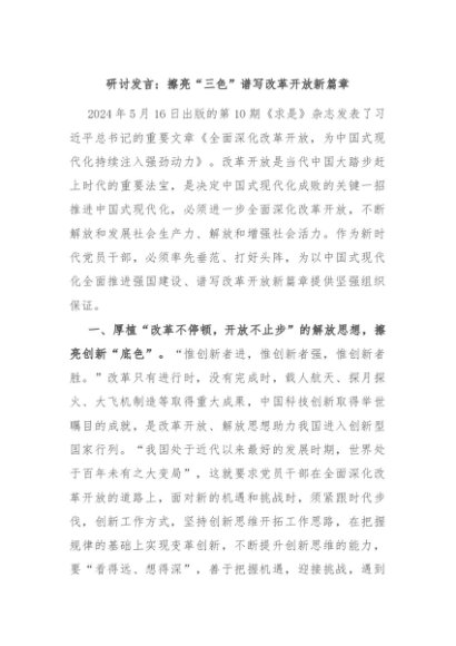 / 【七哥公文】2024年:研讨发言:擦亮“三色”谱写改革开放新篇章+更多免费公文+VX:QiGeGongWen2024