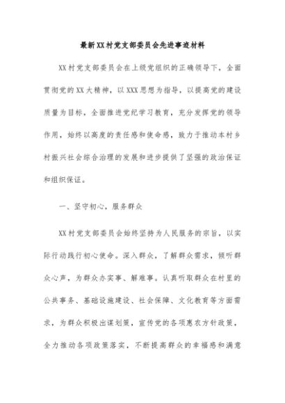 【七哥公文】2024年:支部委员会先进事迹+更多免费公文+VX:QiGeGongWen2024