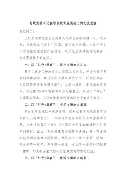 / 【七哥公文】2024年:高效党委书记在思政教育座谈会上的交流发言+更多免费公文+VX:QiGeGongWen2024