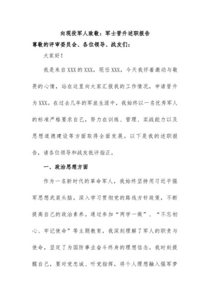 【七哥公文】2024年:向现役军人致敬:军士晋升述职报告+更多免费公文+VX:QiGeGongWen2024