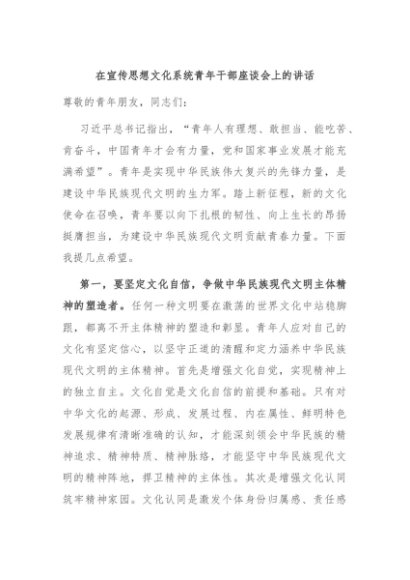 / 【七哥公文】2024年:在宣传思想文化系统青年干部座谈会上的讲话+更多免费公文+VX:QiGeGongWen2024