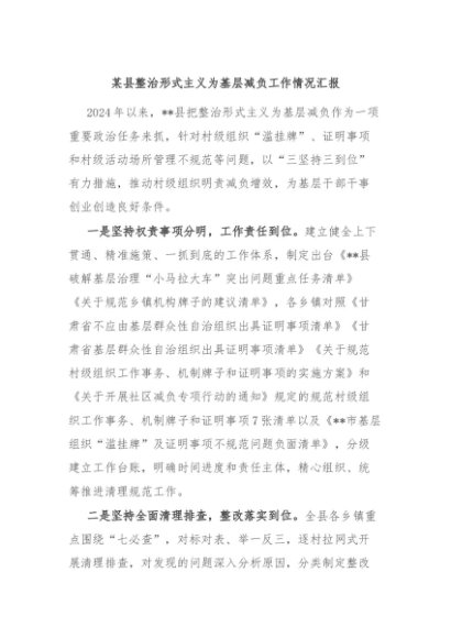 / 【七哥公文】2024年:某县整治形式主义为基层减负工作情况汇报+更多免费公文+VX:QiGeGongWen2024