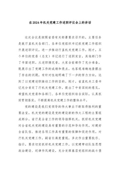 / 【七哥公文】2024年:在2024年机关党建工作述职评议会上的讲话+更多免费公文+VX:QiGeGongWen2024