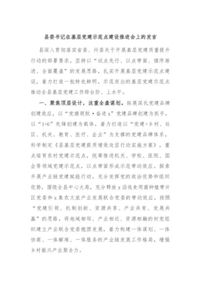 / 【七哥公文】2024年:县委书记在基层党建示范点建设推进会上的发言+更多免费公文+VX:QiGeGongWen2024
