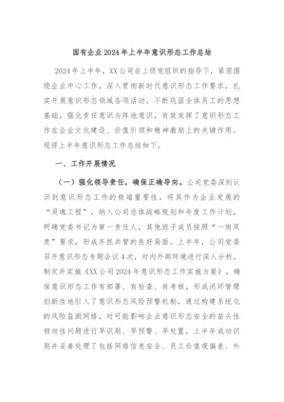 / 【七哥公文】2024年:国有企业2024年上半年意识形态工作总结+更多免费公文+VX:QiGeGongWen2024