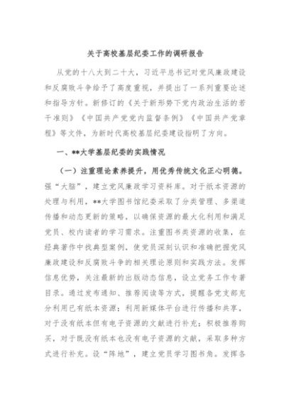 / 【七哥公文】2024年:关于高校基层纪委工作的调研报告+更多免费公文+VX:QiGeGongWen2024