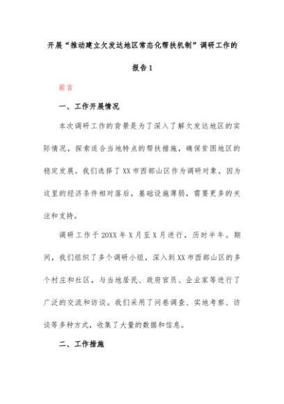 【七哥公文】2024年:关于XX市开展“推动建立欠发达地区常态化帮扶机制”调研工作的报告+更多免费公文+VX:QiGeGongWen2024