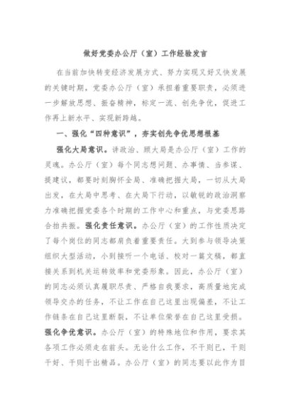 / 【七哥公文】2024年:做好党委办公厅(室)工作经验发言+更多免费公文+VX:QiGeGongWen2024