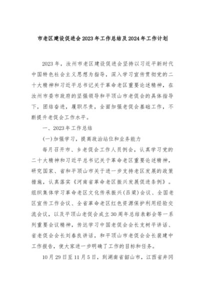 【七哥公文】2024年:市老区建设促进会2023年工作总结及2024年工作计划+更多免费公文+VX:QiGeGongWen2024