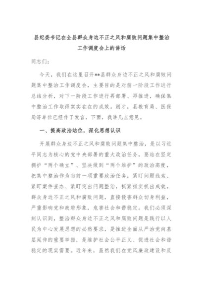 【七哥公文】2024年:县纪委书记在全县群众身边不正之风和腐败问题集中整治工作调度会上的讲话+更多免费公文+VX:QiGeGongWen2024