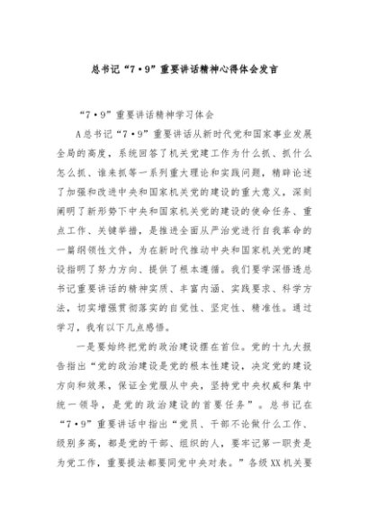/ 【七哥公文】2024年:总书记“7·9”重要讲话精神心得体会发言+更多免费公文+VX:QiGeGongWen2024