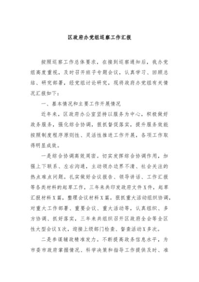 / 【七哥公文】2024年:区政府办党组巡察工作汇报+更多免费公文+VX:QiGeGongWen2024