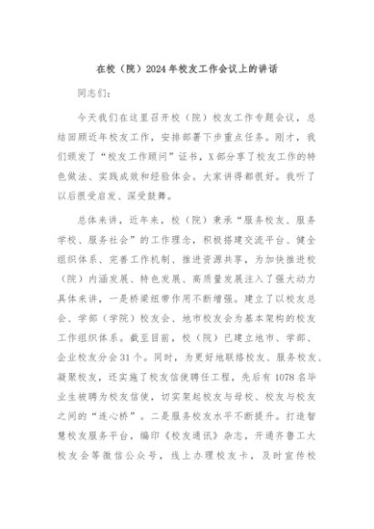 / 【七哥公文】2024年:在校(院)2024年校友工作会议上的讲话+更多免费公文+VX:QiGeGongWen2024
