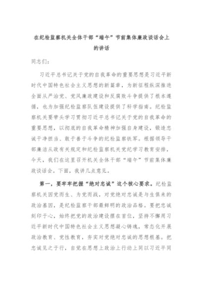 【七哥公文】2024年:在纪检监察机关全体干部“端午”节前集体廉政谈话会上的讲话+更多免费公文+VX:QiGeGongWen2024