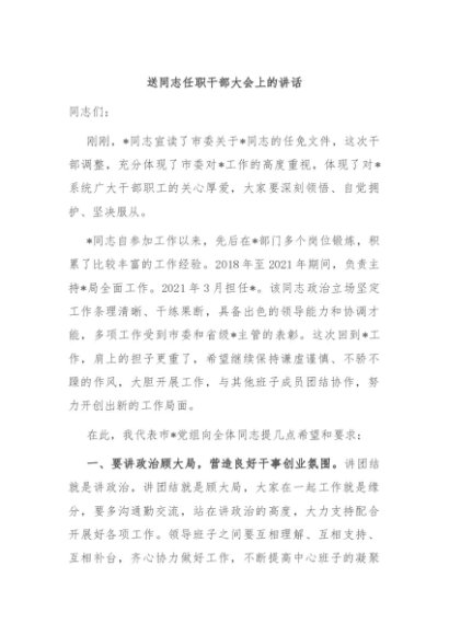 / 【七哥公文】2024年:送同志任职干部大会上的讲话+更多免费公文+VX:QiGeGongWen2024