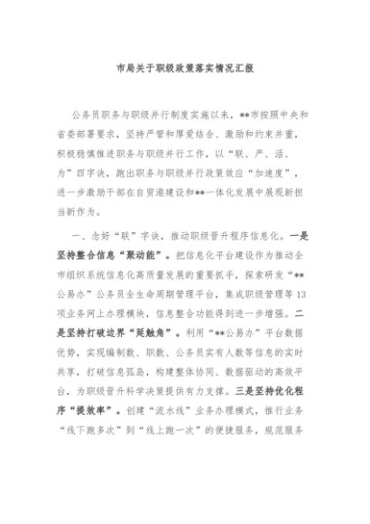 / 【七哥公文】2024年:市局关于职级政策落实情况汇报+更多免费公文+VX:QiGeGongWen2024