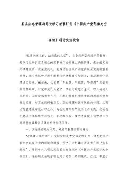 【七哥公文】2024年:某县应急管理局局长学习新修订的《中国共产党纪律处分条例》研讨交流发言+更多免费公文+VX:QiGeGongWen2024