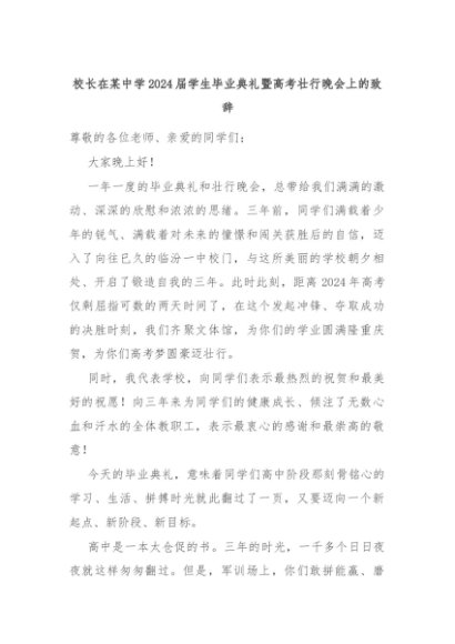 【七哥公文】2024年:校长在某中学2024届学生毕业典礼暨高考壮行晚会上的致辞+更多免费公文+VX:QiGeGongWen2024