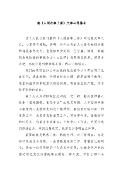 / 【七哥公文】2024年:读《人须在事上磨》文章心得体会+更多免费公文+VX:QiGeGongWen2024