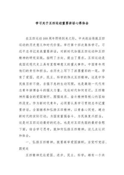 / 【七哥公文】2024年:学习关于五四运动重要讲话心得体会+更多免费公文+VX:QiGeGongWen2024