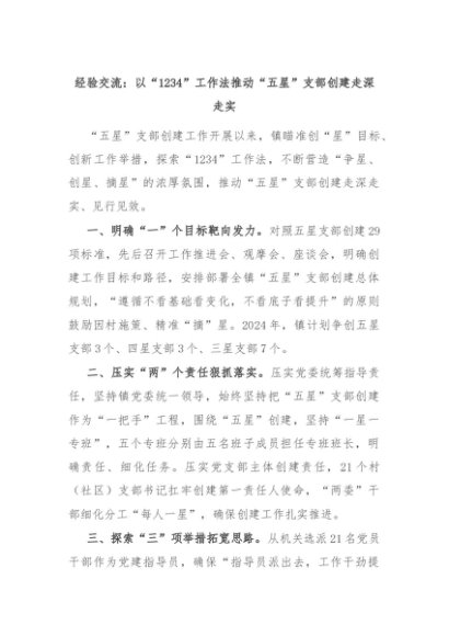 【七哥公文】2024年:经验交流:以“1234”工作法推动“五星”支部创建走深走实+更多免费公文+VX:QiGeGongWen2024