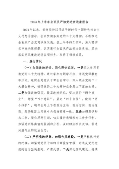 / 【七哥公文】2024年:2024年上半年全面从严治党述责述廉报告+更多免费公文+VX:QiGeGongWen2024