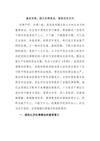 / 【七哥公文】2024年:廉政党课:强化纪律观念,锤炼优良作风+更多免费公文+VX:QiGeGongWen2024