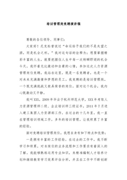 / 【七哥公文】2024年:培训管理岗竞聘演讲稿+更多免费公文+VX:QiGeGongWen2024