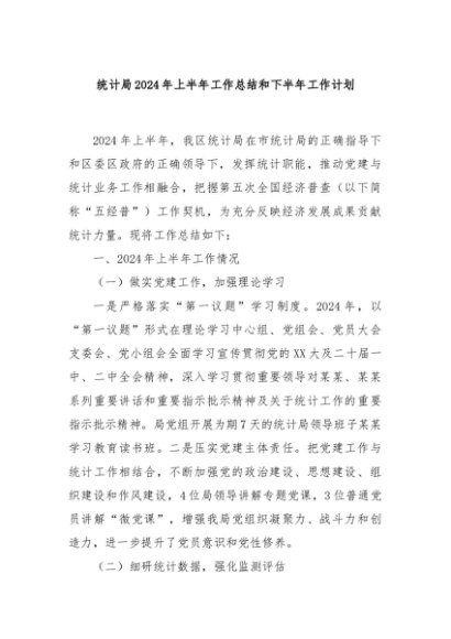 / 【七哥公文】2024年:统计局2024年上半年工作总结和下半年工作计划+更多免费公文+VX:QiGeGongWen2024