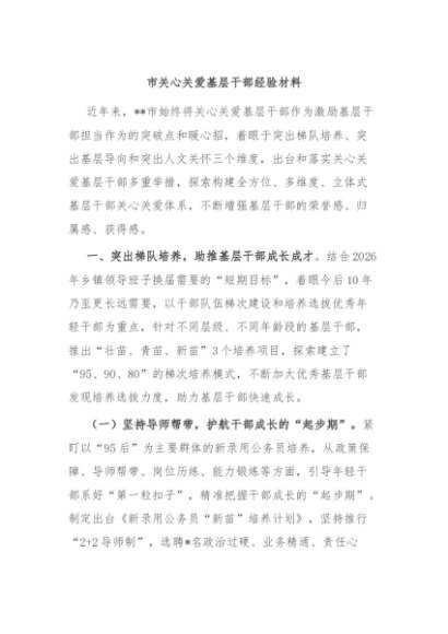 / 【七哥公文】2024年:市关心关爱基层干部经验材料+更多免费公文+VX:QiGeGongWen2024