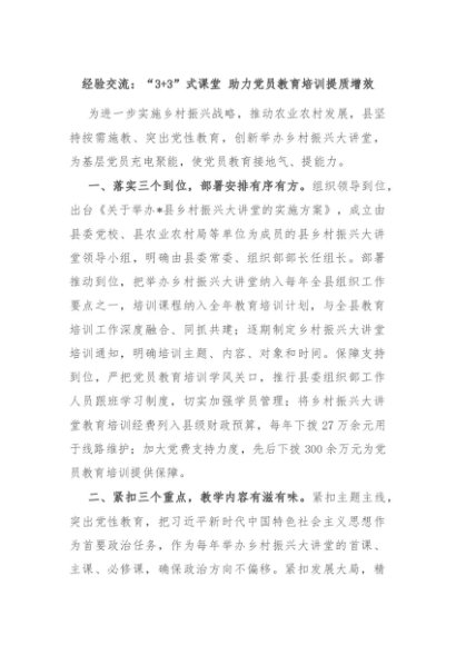 【七哥公文】2024年:经验交流:“3+3”式课堂 助力党员教育培训提质增效+更多免费公文+VX:QiGeGongWen2024