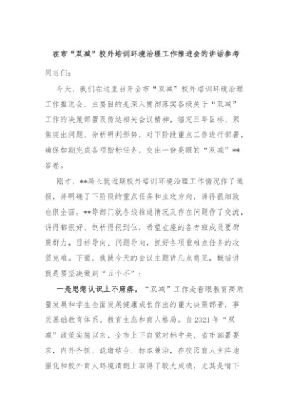 / 【七哥公文】2024年:在市“双减”校外培训环境治理工作推进会的讲话参考+更多免费公文+VX:QiGeGongWen2024
